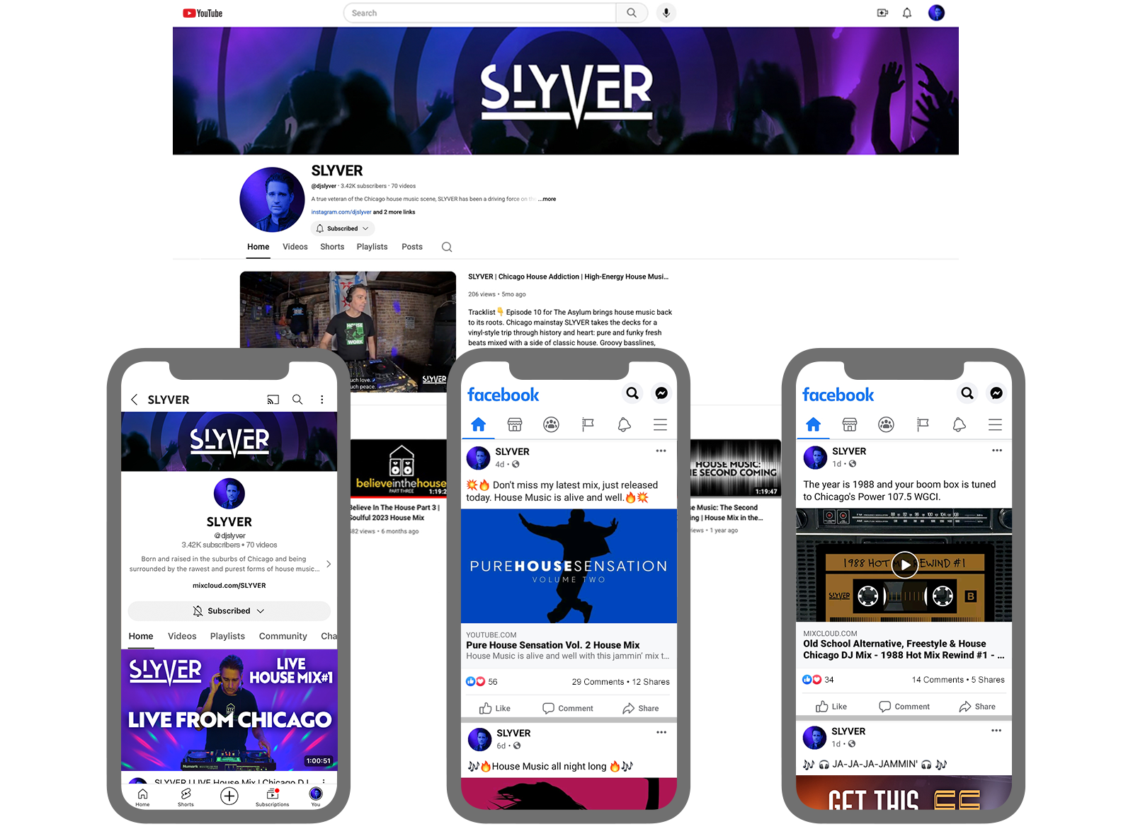 I act as the sole Creative Director and Designer for the SLYVER ecosystem, producing a high volume of consistent, mood-driven content across YouTube, Mixcloud, and social media. This project showcases my ability to: